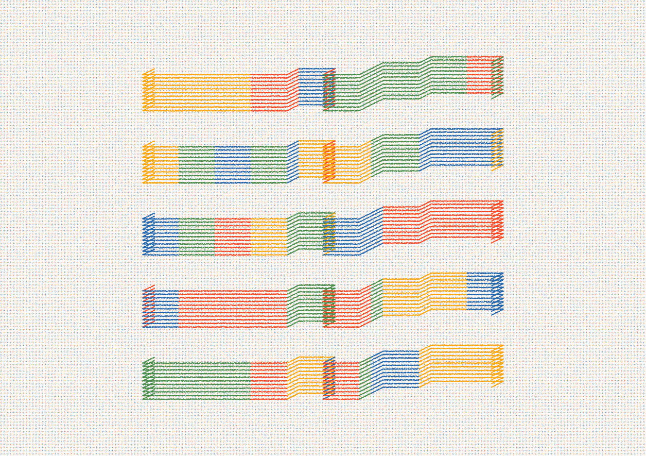 Color theory plays a crucial role in Farbteiler, explaining why the eye is immediately and intuitively attracted to each piece. Based on early 20th c. Bauhaus artist and teacher Johannes Itten’s Farbkreis color wheel, Farbteiler employs a random subset of one to twelve colors to create a delightfully washed palette.